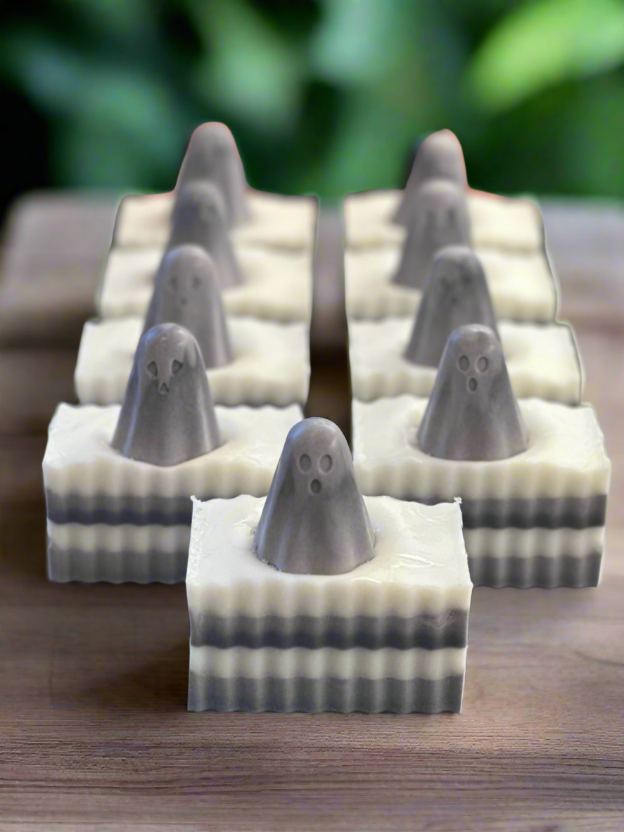 Meet Boo Bay & Cider — the perfect blend of bay rum, apple cider, and lavender with a little ghostly surprise on top! These creepy-cute bars are haunting my curing rack and won’t stick around for long.